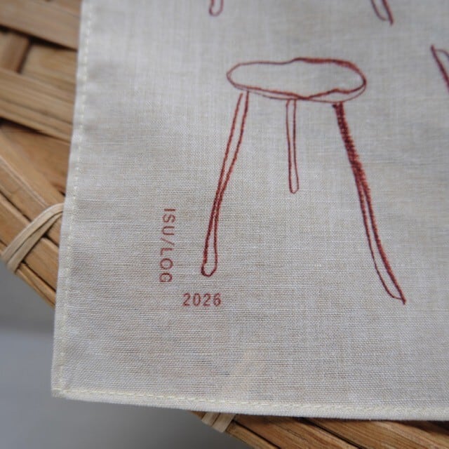 Hikaru Miyazakiの描く旅先で出会ったISUのイラストデザインのハンカチ。